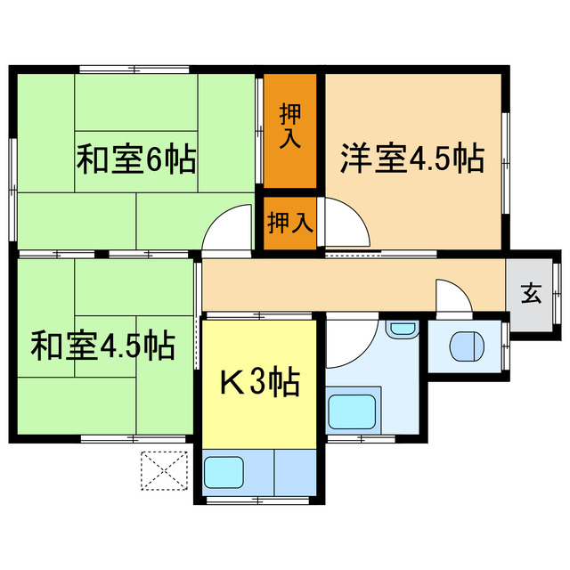 | 間取り | 3K 和室4.5帖/和室6帖/洋室4.5帖/K3帖 | ||