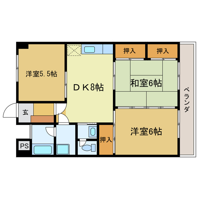 | 間取り | 3DK 洋室6帖/洋室8帖/和室6帖/DK5.5帖 | ||