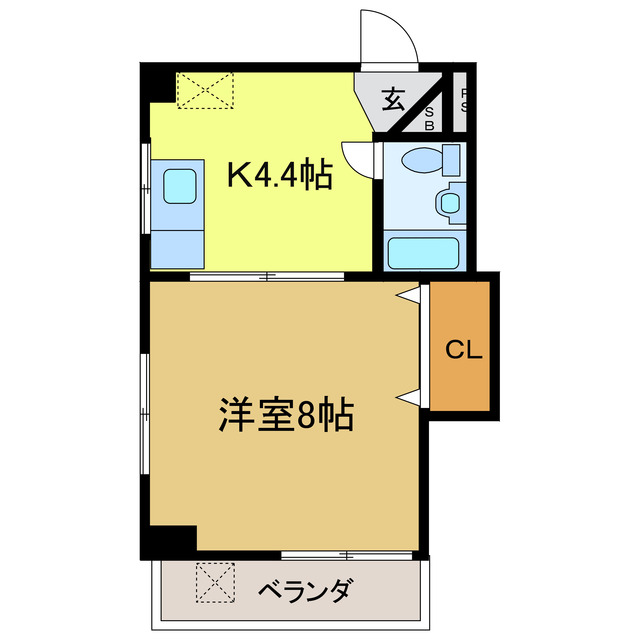 | 間取り | 1DK 洋室8帖/DK4.4帖 | ||
